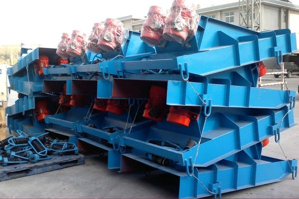 振動給料機可以把塊狀、顆粒狀物料從料倉中均勻、連續地喂料到受料裝置中;在砂石生產線中可以為破碎機連續均勻地喂料避免破碎機受料口堵塞;專為破碎篩分中粗破碎機前均勻輸送大塊物料設計。振動給料機采用雙偏心軸激振器的結構特點,保證設備能承受大塊物料下落的沖擊,給料能力大。在生產流程中可以把塊狀、顆粒狀物料從貯料倉中均勻、定時、連續地給到受料裝置中去,從而防止受料裝置因進料不均而產生死機的現象,延長了設備的使用壽命。給料機可分為鋼板結構和篦條結構,鋼板結構的給料機多用于砂石料生產線,將物料全部均勻地送入破碎設備;篦條結構的給料機可對物料進行粗篩分,使系統在配置上更經濟合理,在破碎篩分中已作為必不可少的設備。