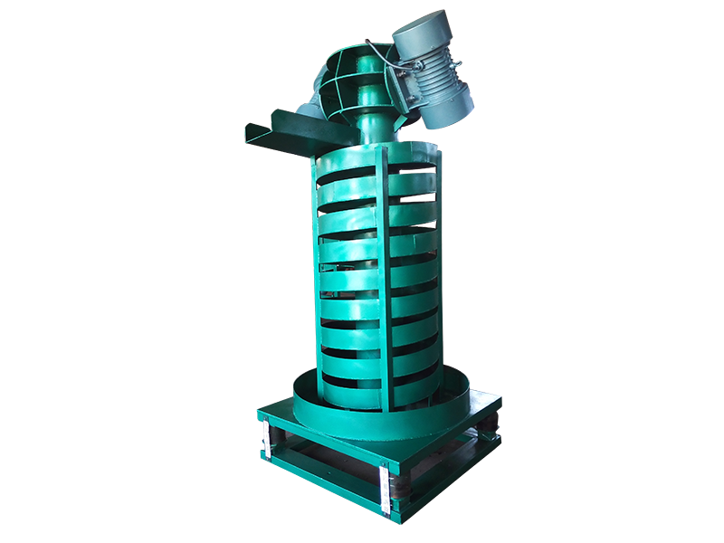當DZC系列垂直提升機工作時,根據雙振動電機自同步原理,由振動電機產生激振力,強迫整個輸送塔體作水平圓運動和向上垂直運動的空間復合振動,螺旋槽內的物料則受輸送槽的作用,作勻速拋擲圓運動,沿輸送槽體向上運動,從而完成物料的向上(或向下)輸送作業。