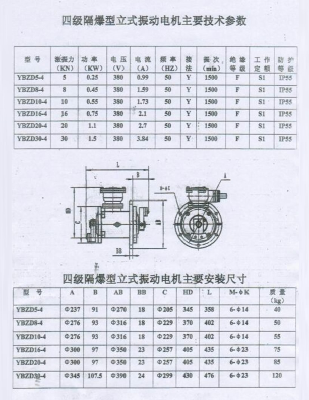YBZD系列戶外隔爆型振動(dòng)三相異步電動(dòng)機(jī)(簡稱防爆型振動(dòng)電機(jī)),其工作原理和通用型振動(dòng)電機(jī)類似,是利用兩端的偏心塊高速旋轉(zhuǎn)產(chǎn)生振動(dòng)力作為振動(dòng)源。該系列防爆振動(dòng)電機(jī)具有設(shè)計(jì)合理、結(jié)構(gòu)緊湊、激振效率高、節(jié)能、壽命長、運(yùn)行可靠、安裝調(diào)試方便等優(yōu)點(diǎn)。可作為振動(dòng)料斗、振動(dòng)篩、圓振篩、振動(dòng)給料機(jī)、振動(dòng)輸送機(jī)的要求防爆環(huán)境工作振動(dòng)源。其防爆性能符合GB3836.2-2000《爆炸性氣體環(huán)境用電氣設(shè)備——隔爆型”d"》。防爆標(biāo)志為ExdⅡBT4,使用于Ⅱ類A、B級(jí)T1~T4組可燃性氣體或蒸汽與空氣形成的爆炸性混合物的場所。